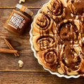 Naughty Nuts Mandeļu kanēlis Tahini ir izgatavots no 100% dabīgām sastāvdaļām un kvalitatīvi iegūti. Tas nesatur tādas piedevas kā palmu tauki vai cukurs. Tahini ir saldināts ar datelēm, kas harmoniski apvienotas ar mandelēm, Indijas riekstiem un kanēli, piešķirot tai īstu kanēļa rullīšu garšu!