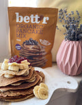 Tagad tās variet pagatavot ļoti ātri un vienkārši, izmantojot mūsu ekoloģisko pankūku maisījumu. Izbaudi lielisku tekstūru, sāļo garšu un nevainojamas, tīras sastāvdaļas. Vienkārši pievienojiet maisījumam pienu/augu dzērienu un eļļu/kausētu sviestu un cepiet, līdz tās ir gatavas.